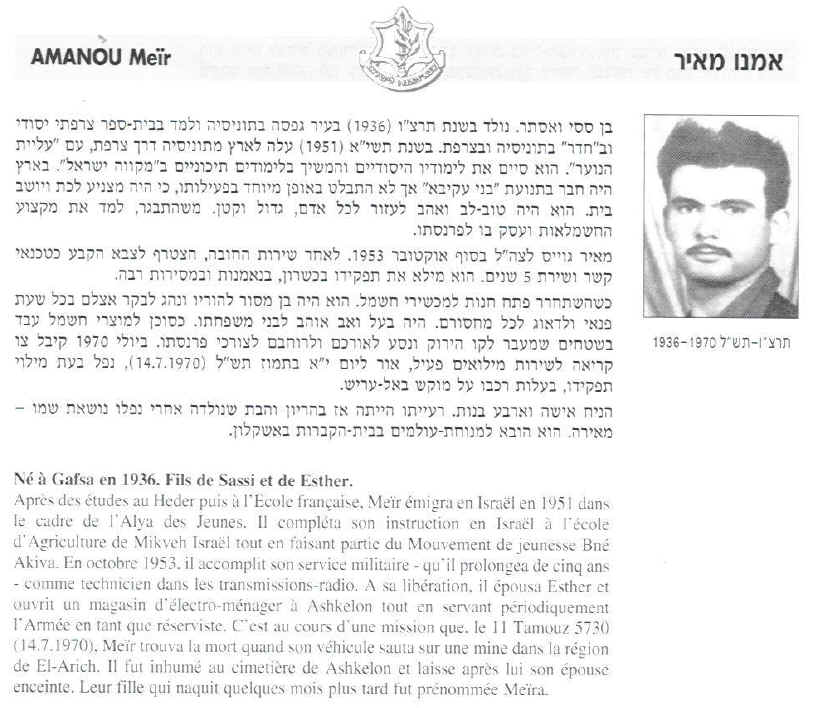 MEMORIAL DES ORIGINAIRES DE TUNISIE TOMBES AU CHAMP D'HONNEUR ET VICTIMES D'ATTENTATS TERRORISTES : AMANOU MEIR |