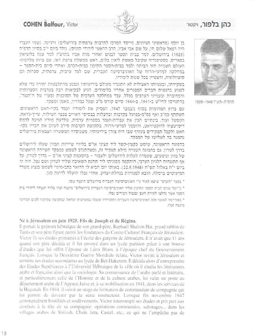 MEMORIAL DES ORIGINAIRES DE TUNISIE TOMBES AU CHAMP D'HONNEUR ET VICTIMES D'ATTENTATS TERRORISTES : COHEN BALFOUR VICTOR |