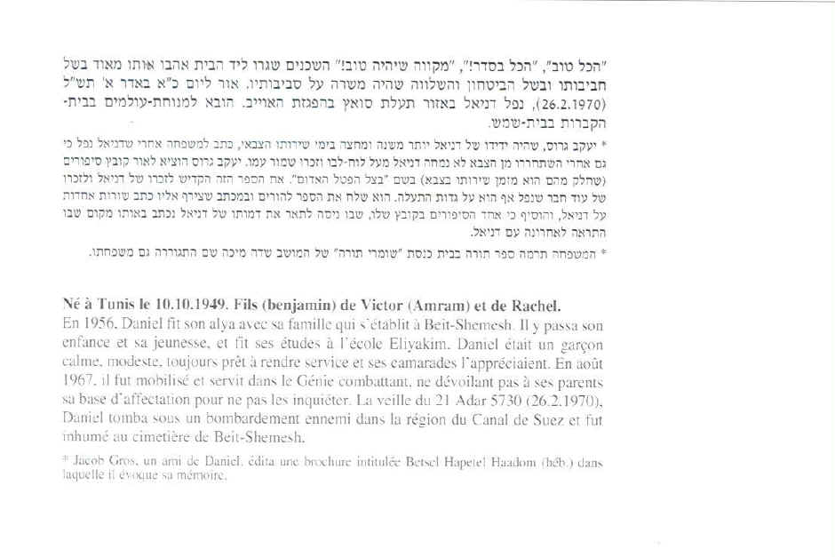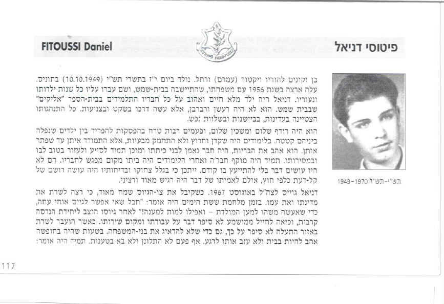 MEMORIAL DES ORIGINAIRES DE TUNISIE TOMBES AU CHAMP D'HONNEUR ET VICTIMES D'ATTENTATS TERRORISTES : FITOUSSI DANIEL |
