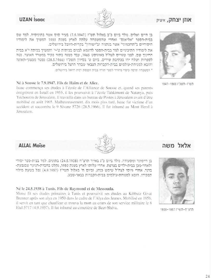 MEMORIAL DES ORIGINAIRES DE TUNISIE TOMBES AU CHAMP D'HONNEUR ET VICTIMES D'ATTENTATS TERRORISTES : UZAN ISAAC - ALLAL MOISE |