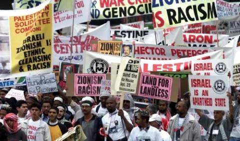 La conférence des Nations Unies contre « le racisme, la discrimination raciale, la xénophobie et l'intolérance qui y est associée » organisée à Durban en 2001 a été l'illustration de cette version palestinienne qui a atteint une importance sans précédent et n'a cessé de croître depuis lors. Porte-drapeau de la cause révolutionnaire la plus prisée au monde, les Palestiniens peuvent compter sur les sympathies et les ressources d'un réseau de soutien unique au monde qui comprend des dictateurs, des extrémistes de gauche, des extrémistes de droite, les Nations Unies, d'autres organisations internationales et des légions d'islamistes, de journalistes, de militants, d'enseignants, d'artistes, de prêtres et de divers bienfaiteurs.