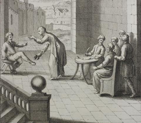 Quelques jours plus tard, Judah va á la ville voisine pour affaires. Il rencontre une prostituée et lui propose de s’accoupler. En échange, il propose lui envoyer demain un agneau . . Elle accepte moyennant qu’il lui donne une garantie. Il lui donne sa canne et son seing (sa signature).
