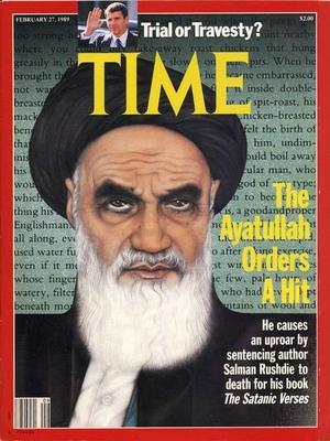 Sur sa couverture du 27 février 1989, le magazine Time représentait Khomeiny avec le titre « The Ayatullah Orders a Hit » [l'ayatollah donne l'ordre de frapper].
