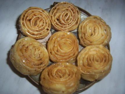 Après avoir confectionné sa pâte en rouleau, l’avoir frit et goûté, elle l’avait trouvé un peu seccos (dérivé de l’adjectif sec) et sans saveur. Alors ce cordon bleu eut l’idée de les enrober dans un sirop parfumé et de les parsemer d’un croquant nommé noisettes. Ainsi sont nés sous ses doigts les manicottes, qui devinrent le dessert phare de Madame BOCCARA et de ses filles. La famille traversera la méditerranée pour s’installer en Tunisie et vit ainsi perpétuer la légende ou histoire vraie de cette mignardise.