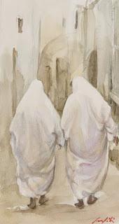 Si j’ai repris trois de tes tableaux montrant la femme tunisienne portant le Sefsari blanc et marchant gracieusement dans les souks, c’est que le thème te fascinait, beaucoup plus que le cheval au galop qui, pour beaucoup, faisait ta réputation d’aquarelliste.