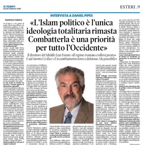 Titre d'Il Tempo : «L'Islam politico è l'unica ideologia totalitaria rimasta: Combatterla è una priorità per tutto l'Occidente» (L'islam politique est la seule idéologie totalitaire qui subsiste : le combattre est une priorité pour tout l'Occident).