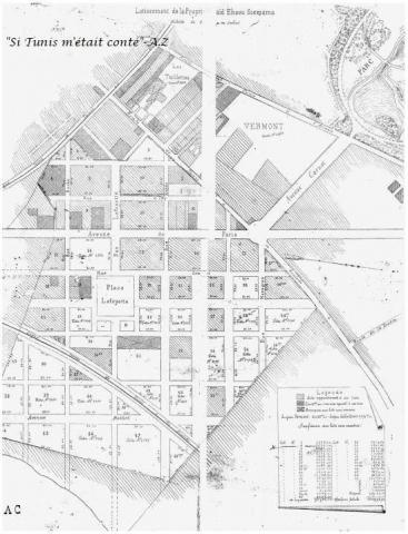 Le quartier est divisé en sept îlots et la parcelle la plus importante (immatriculée sous le titre 8706 propriété Cagou) est la propriété de Eliaou Ben Cheloumou Scemama. L’étude de ce titre foncier révèle que ce propriétaire terrien, une personnalité caïdale, qui est à l’origine de la création du quartier.