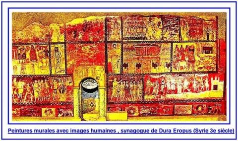 Les images de personnes humaines couvrant les murs de l'antique synagogue de Dura-Eropus (Syrie, 3e Siècle) nous montrent qu'elles étaient bienvenues dans les lieux saints. Elles servaient peut être de moyen didactiques qui servait à expliquer les épisodes Bibliques.